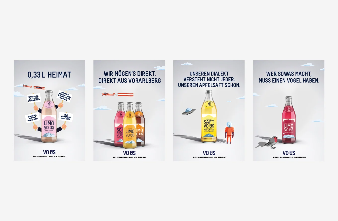 VO ÜS war 2020 die erfolgreichste Markteinführung im österreichischen Lebensmittelhandel. VO ÜS ist heute der Limonaden-Platzhirsch in Vorarlberg: von allen getrunken, von allen geliebt und nicht mehr wegzudenken.